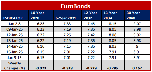 During the week ended 16th January 2026, the market showed a robust performance in the bond market, equities, derivatives, Eurobonds and the international market.
