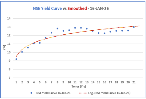 The NSE yield curve has generally edged upwards in the medium-term end 5 to 8 -year horizon while remaining relatively stable in the short-term and a relative decline in the long-term end.