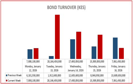 Bond turnover in the domestic secondary market increased by 76.8% during the week ended 16th January 2026.