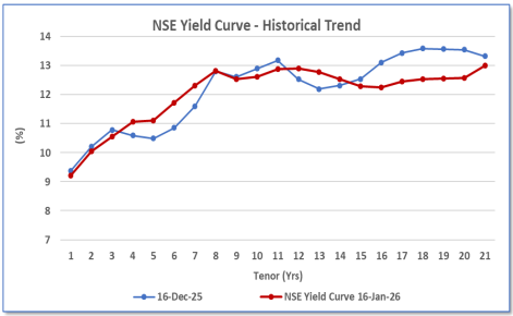 The NSE yield curve has generally edged upwards in the medium-term end 5 to8 year horizon while remaining relatively stable in the short-term and long-term end.