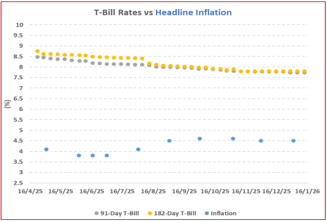 This week, T-bills were oversubscribed for the third consecutive week with a subscription rate of 128.4%, down from 130.3% last week.