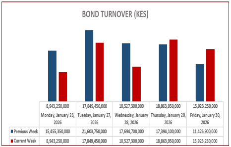 In attachment, is the performance of the Daily Eurobond turnover for the week ended 30th January 2026 in statistical way.