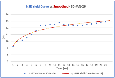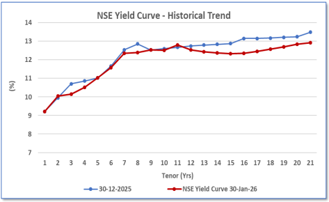 The NSE yield curve has generally edged upwards in the medium-term end 5 to 8 -year horizon while remaining relatively stable in the short-term and a relative decline in the long-term end.