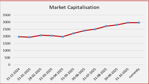 The market capitalization this week lowered in performance compared to the last week. NSE had attained 3 Trillion ever in history.
