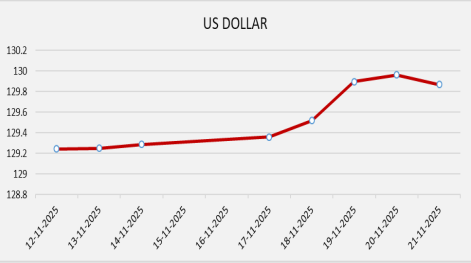 The Kenya Shilling remained stable against major international and regional currencies during the week ending November 14, 2025. It exchanged at KES 129.96 per U.S. dollar on November 20, compared to KES 129.25 per US dollar on November 13
