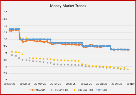 Also see the performance of the Treasury Bills— 91 days and 182 days, in attachment with KESONIA and Central Bank Rates (CBR)