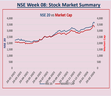 During the week ended 20th February 2026, the market showed a robust performance in the bond market, equities, derivatives, Eurobonds and the international market.