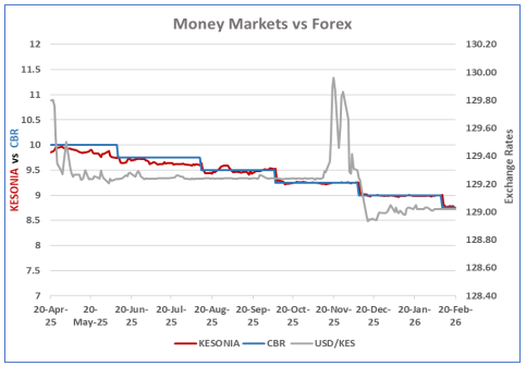 KESONIA remained stable at 8.77 on average over the week ending Friday, 20th February .