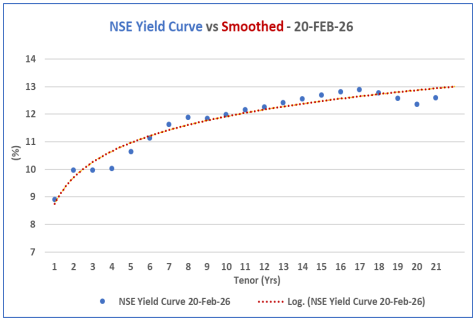 The NSE yield curve has generally edged upwards in the medium-term end 5 to 8 -year horizon while remaining relatively stable in the short-term and a relative shooting at the long term, partially influenced by the CBR rate cut.